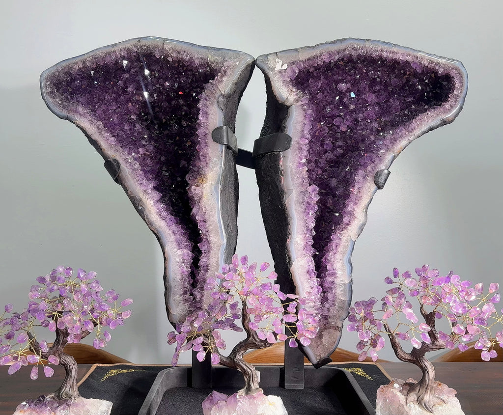 Amethyst is a calming stone, allowing you to quiet your mind, relieve stress and strain, and dissolve negativity. Placing this piece in your workspace can help you focus better, and placing it in your home will bring peace and relaxation to the environment.