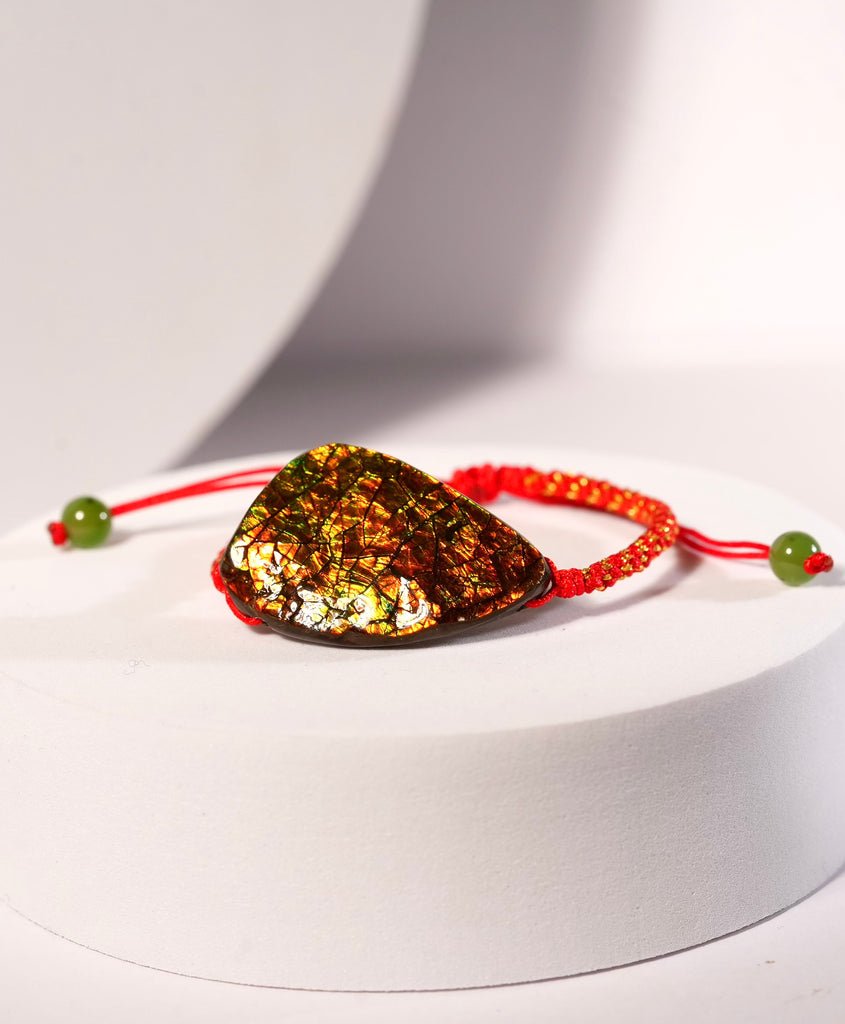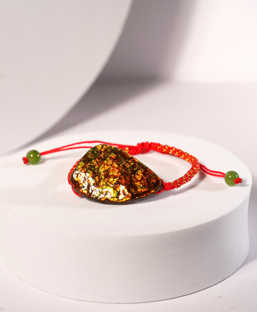 Ammolite Red Cord Bracelet Dragon Scale Pattern Natural Stone #1203