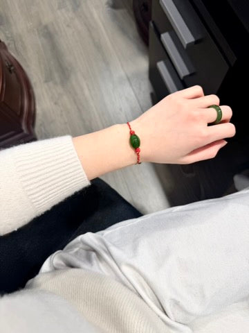 Polar Jade Bracelet Red Cord Eternal Fortune Natural Jade #2905-2