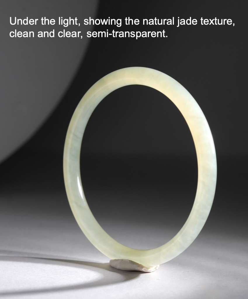 - under the light, showing the natural jade texture, clean and clear, semi-transparent.
