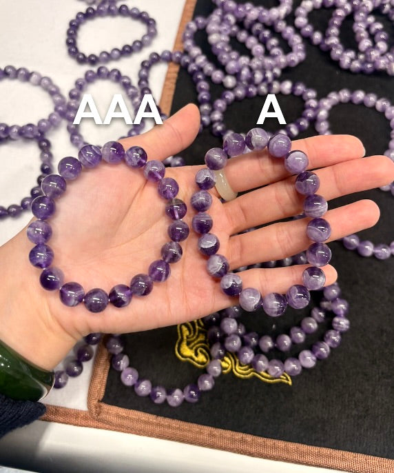 The amethyst crystal is deeply connected to the third-eye chakra, the centre of spirituality and intuition, and the crown chakra, which governs our connection to the universe. This amethyst bracelet will help you dissolve negative energy, relieve stress, and understand yourself more.