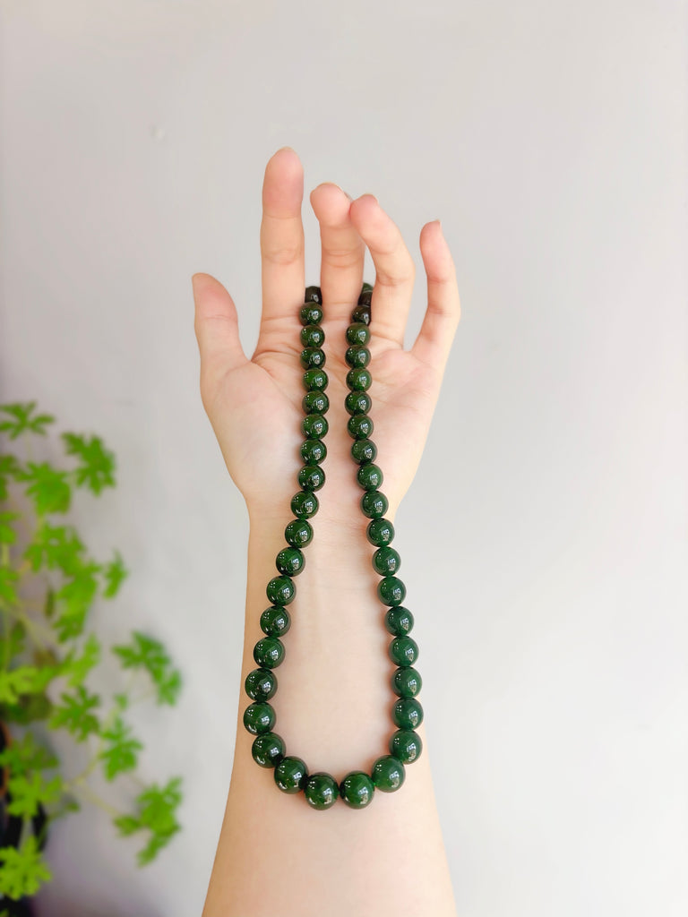 This beautiful earthy green necklace is a beautiful touch for your everyday outfits. Wearing jade can help bring wealth and success into your life. It is also a symbol of vitality and renewal. This is a timeless and elegant piece to add to your collection.