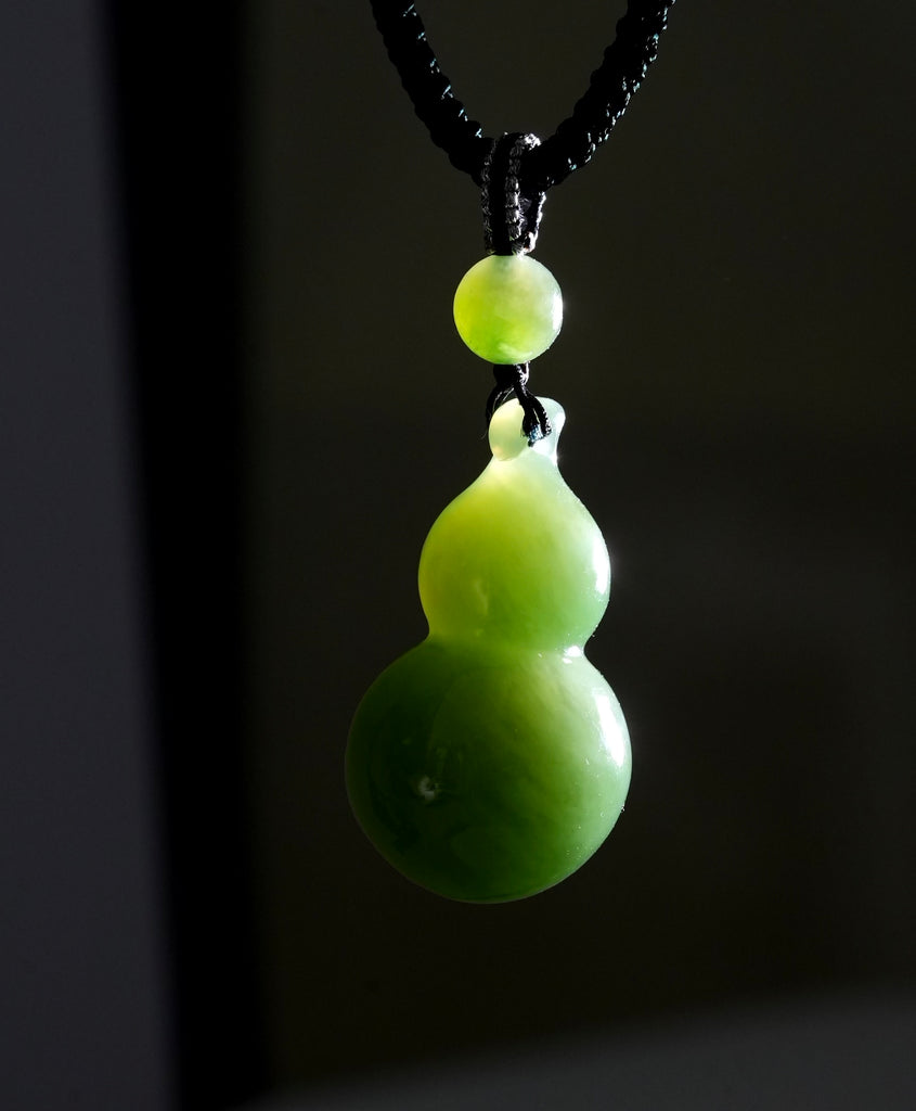 Siberian Chatoyant Jade Gourd Pendant Natural Jade 34mm Top Grade #1340