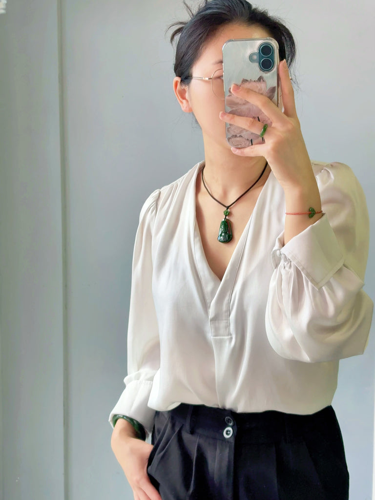 Wearing Guanyin pendant for spiritual protection, blessings, and good fortune.