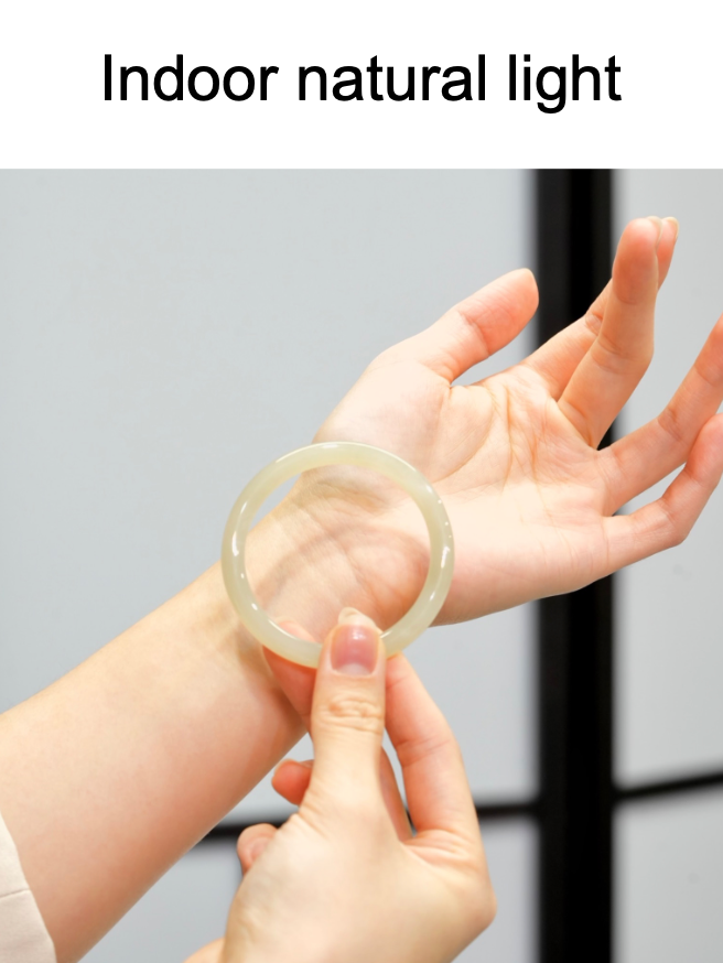 - under the light, showing the natural jade texture, clean and clear, semi-transparent.