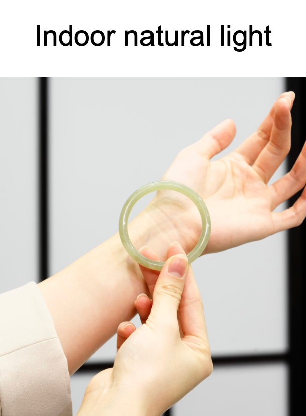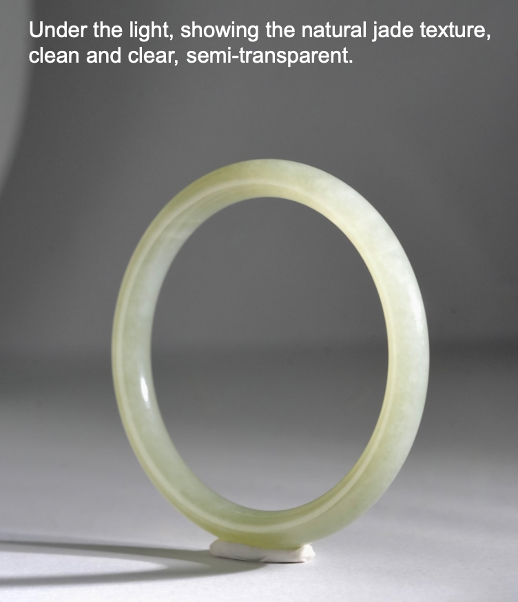• under the light, showing the natural jade texture, clean and clear, semi-transparent.