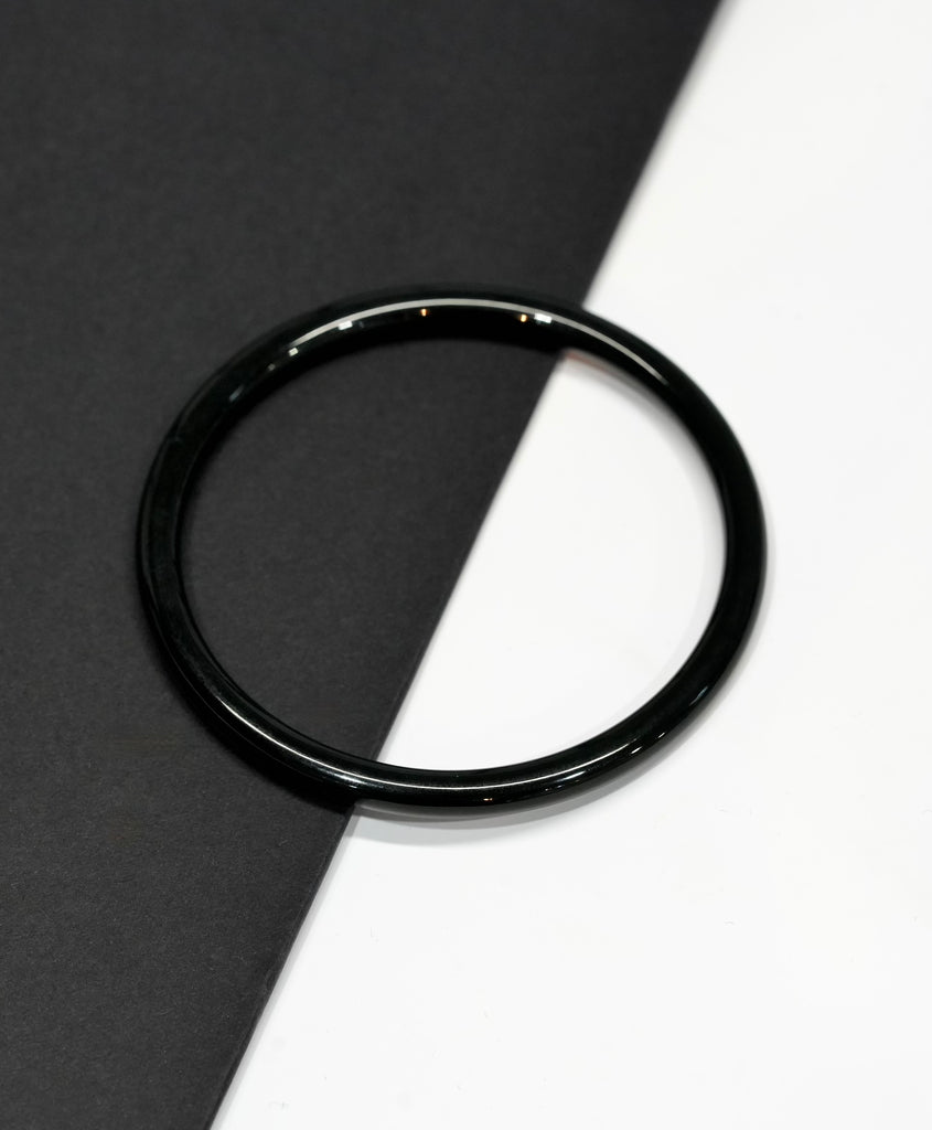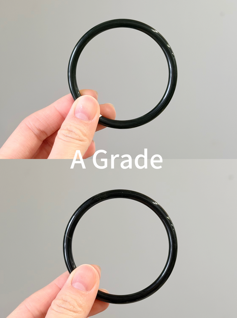 This gorgeous bracelet is a rare midnight green colour. In normal lighting, it almost looks black, but under light, a slight green is visible. Wearing jade can help bring wealth and success into your life.
