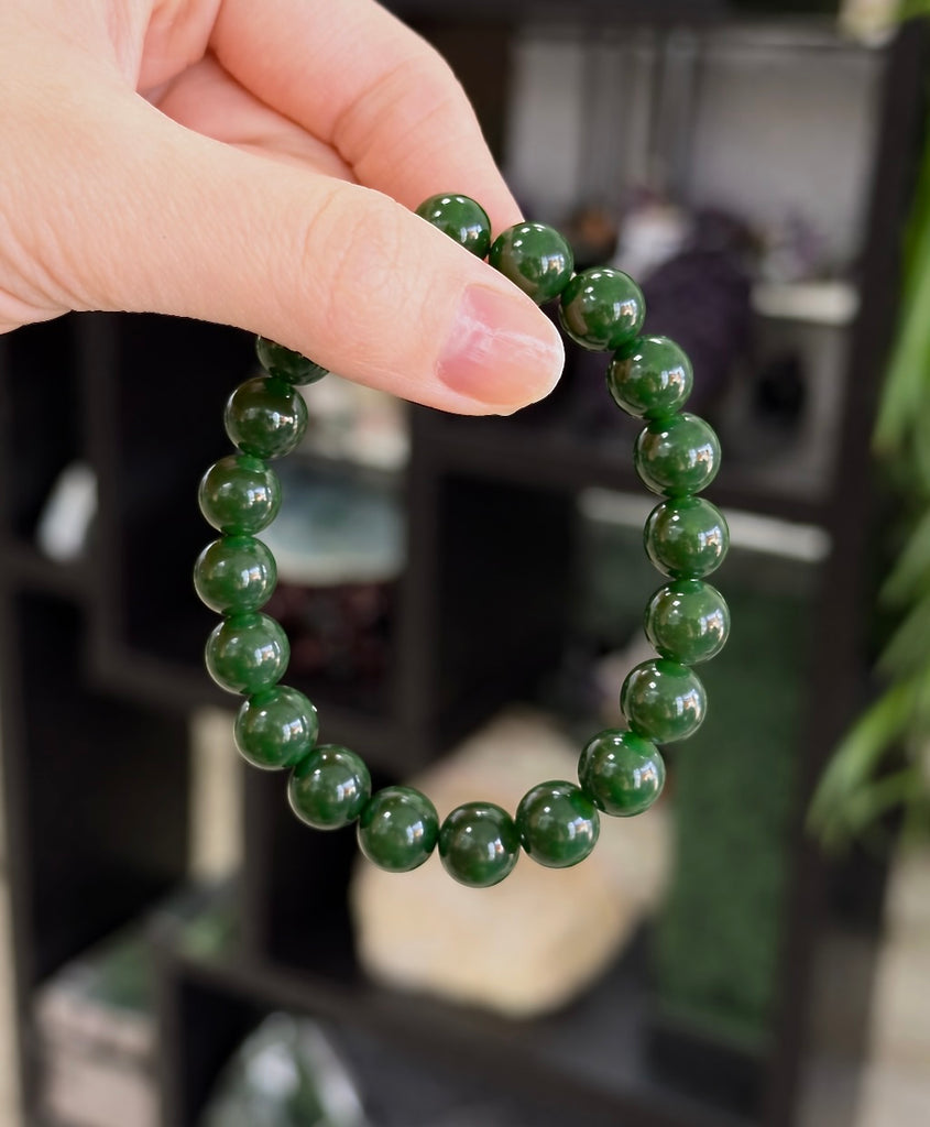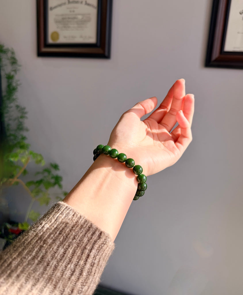 Canadian Old Mine Polar Jade Bracelet Jade Beaded Bracelet Natural Jade 10 mm #2455