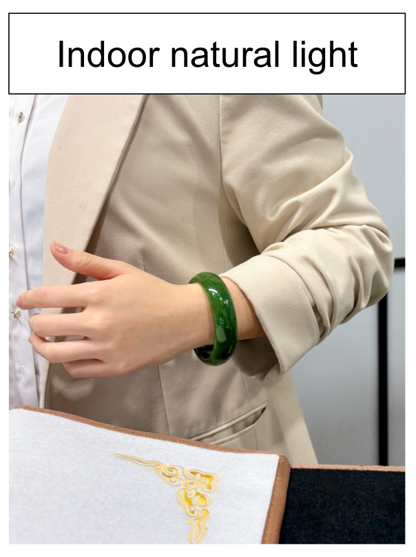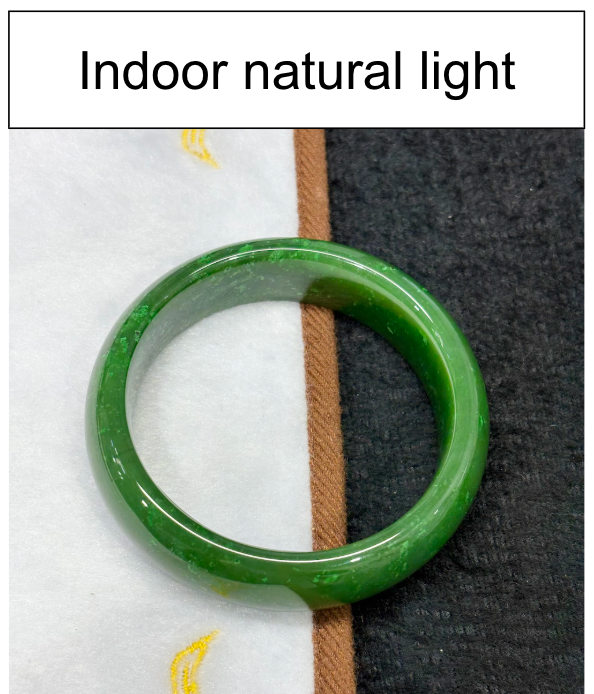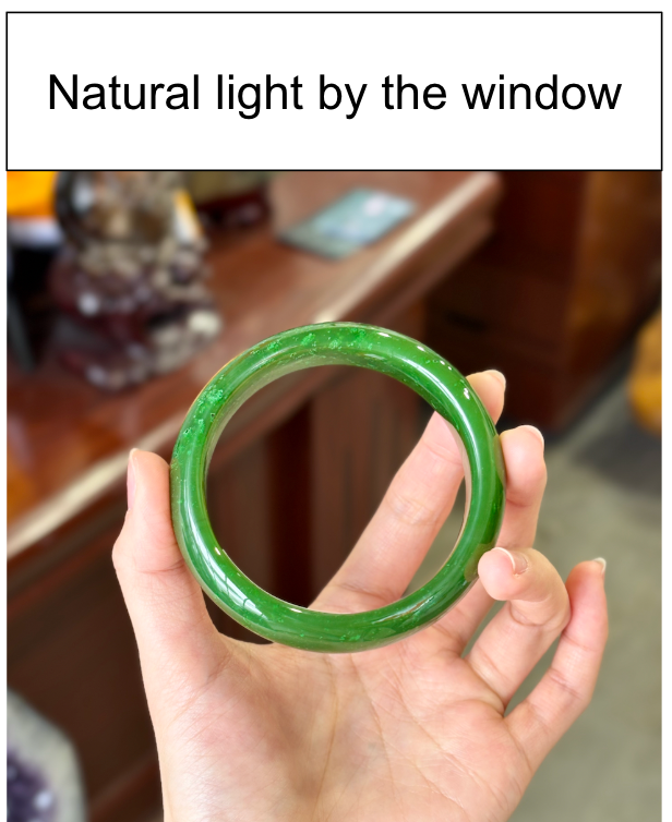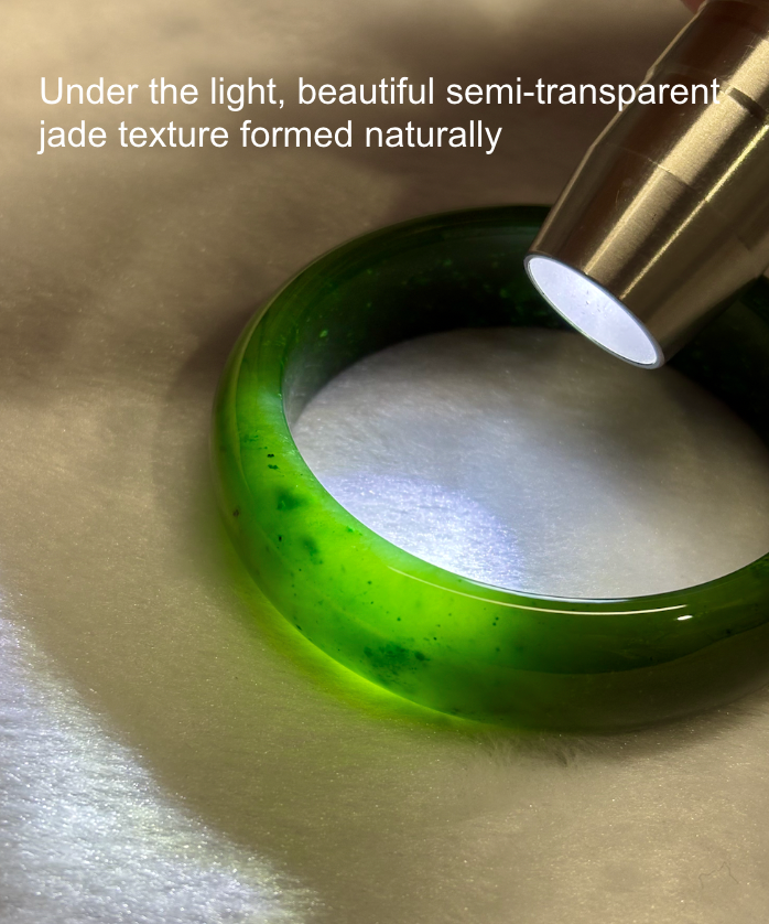 • “White dots” seen on the surface of the bangle are actually green — formed by chromium ions, that makes the bangle color more vivid