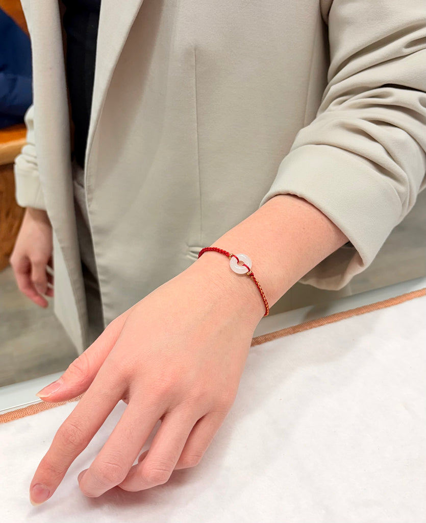 The white jade peace buckle red cord bracelet symbolizes peace, health, and luck. When you wear it, you’ll feel secure and reassured. More than just a bracelet, it's thoughtful companionship.