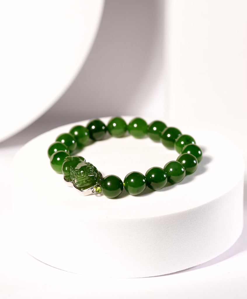 Siberian Jade Pixiu Beaded Bracelet Natural Jade 10mm #1811