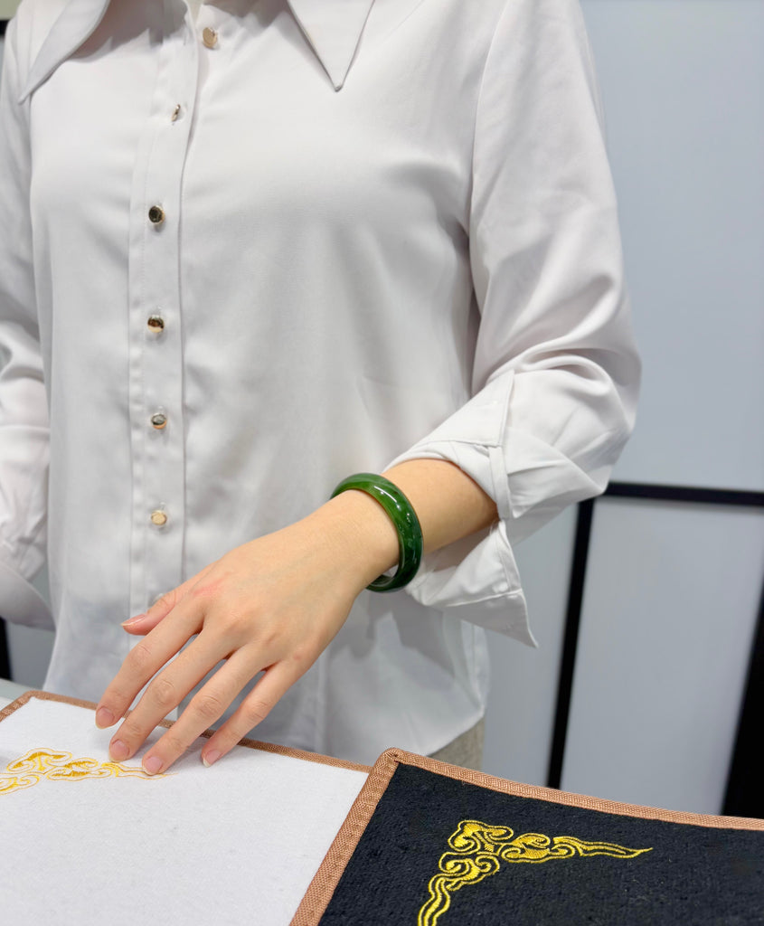 - “White dots” seen on the surface of the bangle are actually green — formed by chromium ions, that makes the bangle color more vivid