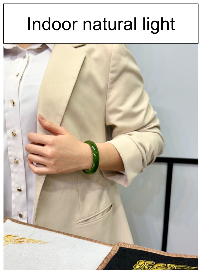 - “White dots” seen on the surface of the bangle are actually green — formed by chromium ions, that makes the bangle color more vivid