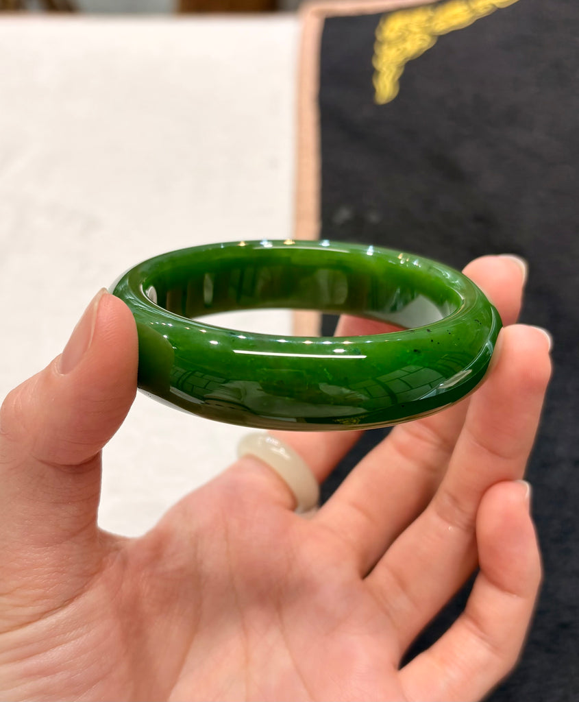 A smooth circle of bright jade wrapping the wrist is thought, even today, to bring peace and protection to its wearer. Jade bangles are highly important pieces of jewelry.