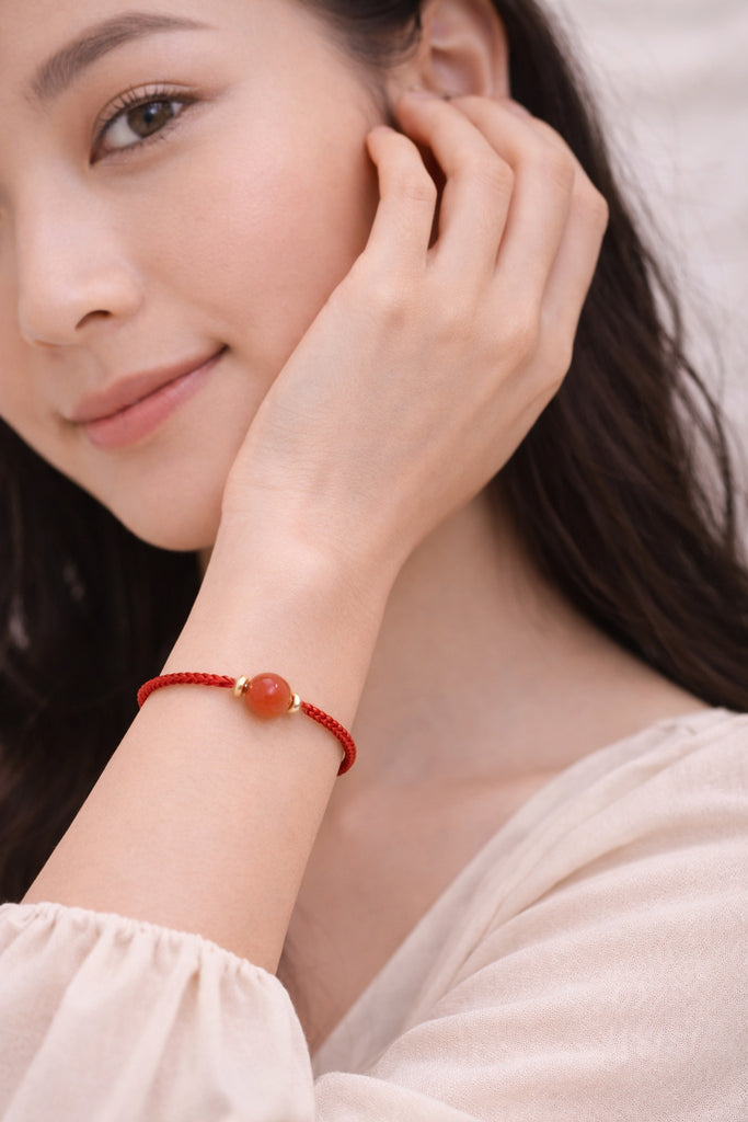 Red Carnelian Hetian White Jade Red Cord Bracelet #1457