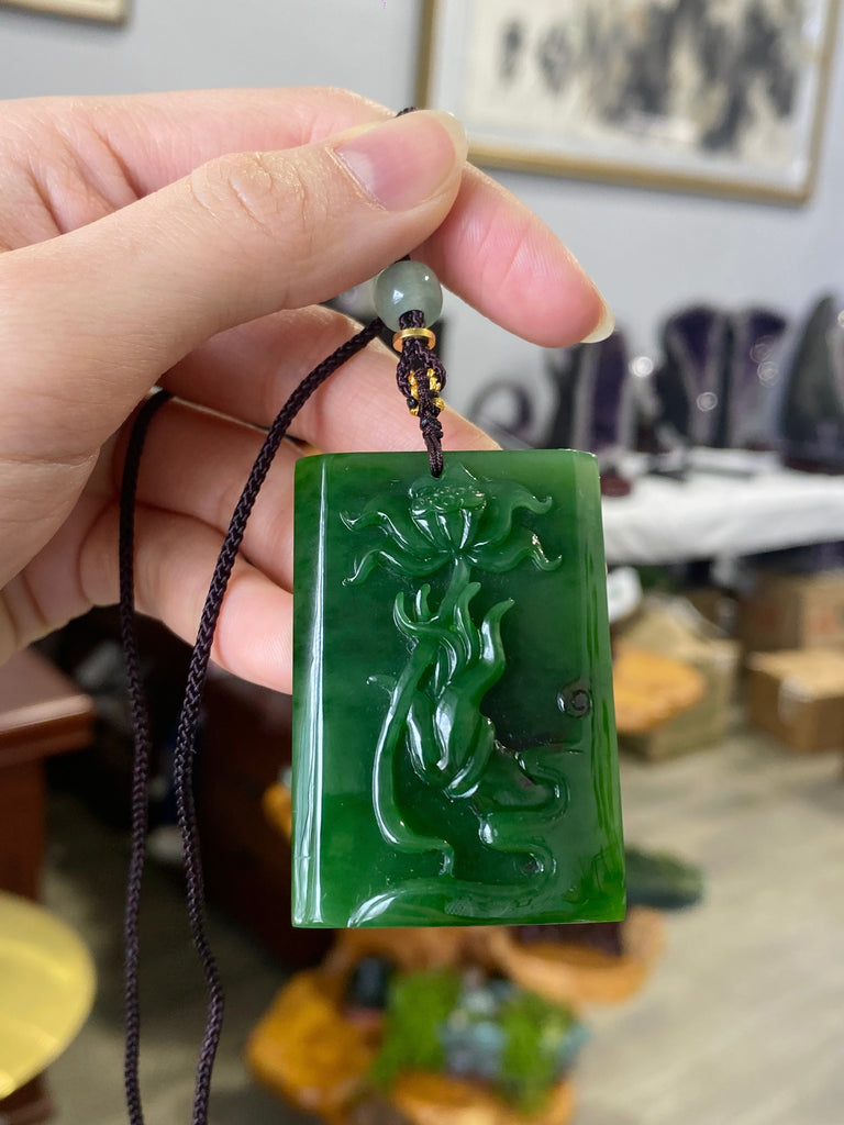 No. 7 Old Mind Siberian Jade Lotus Pendant #2478