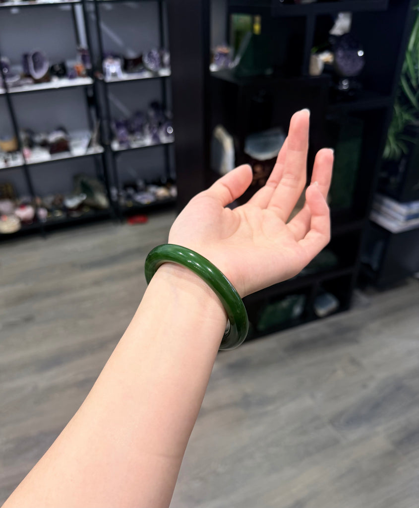 Jade bangles are often worn as fashion accessories, and they hold cultural significance, especially in Chinese and other East Asian traditions, symbolizing purity, protection, and good fortune. Its smooth, rounded form symbolizes harmony and grace.