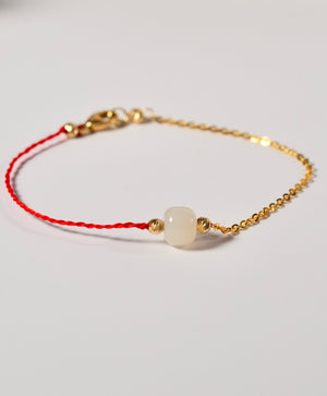 18K White Jade Prime Luck Red Cord Bracelet #2666 Out of stock