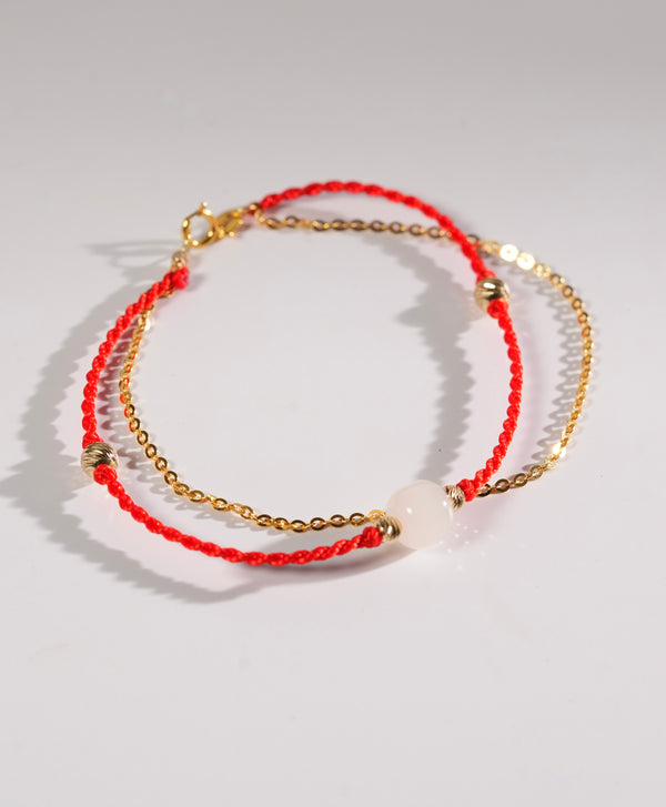 6mm 14K White Jade Red Cord Bracelet #2889 $188