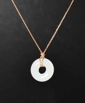 14K White Jade PI Harmony Donut Peace Buckle Pendant #1743 from $499