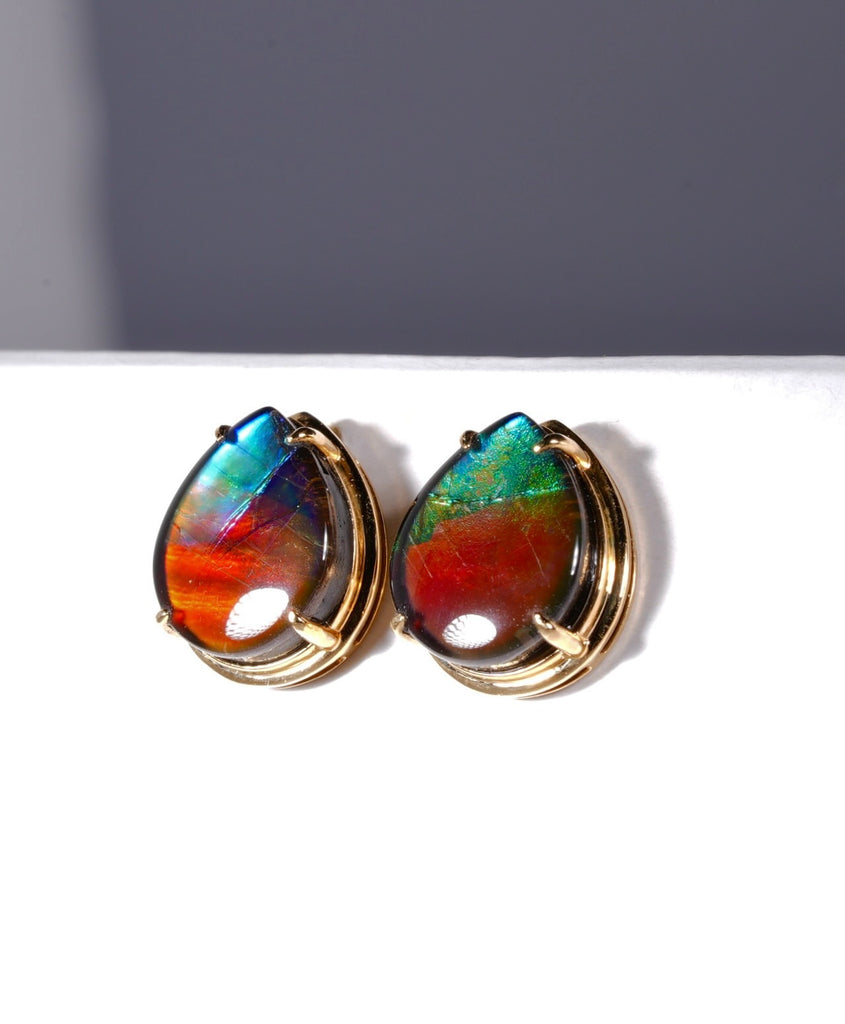 Beautiful and rare Canadian Ammolite Triplet Earrings, genuine and natural.