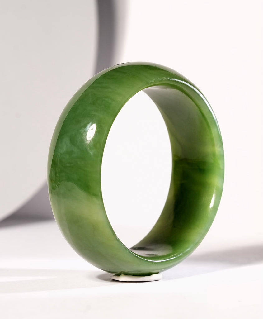 Wide Band Siberian Jade Bangle Natural Jade Bracelet 62mm #2539