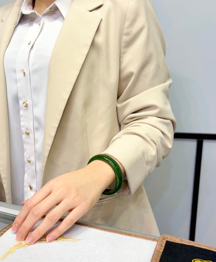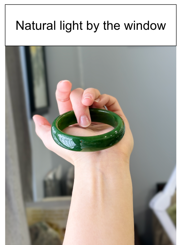 • “White dots” seen on the surface of the bangle are actually green — formed by chromium ions, that makes the bangle color more vivid