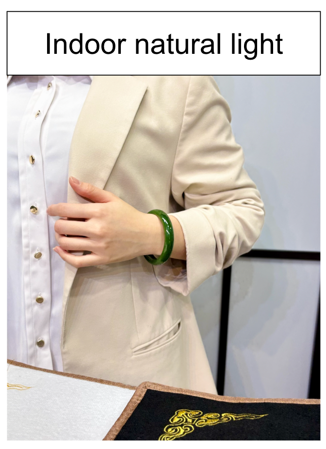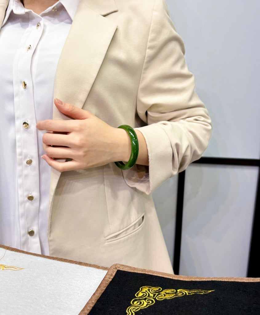 • “White dots” seen on the surface of the bangle are actually green — formed by chromium ions, that makes the bangle color more vivid