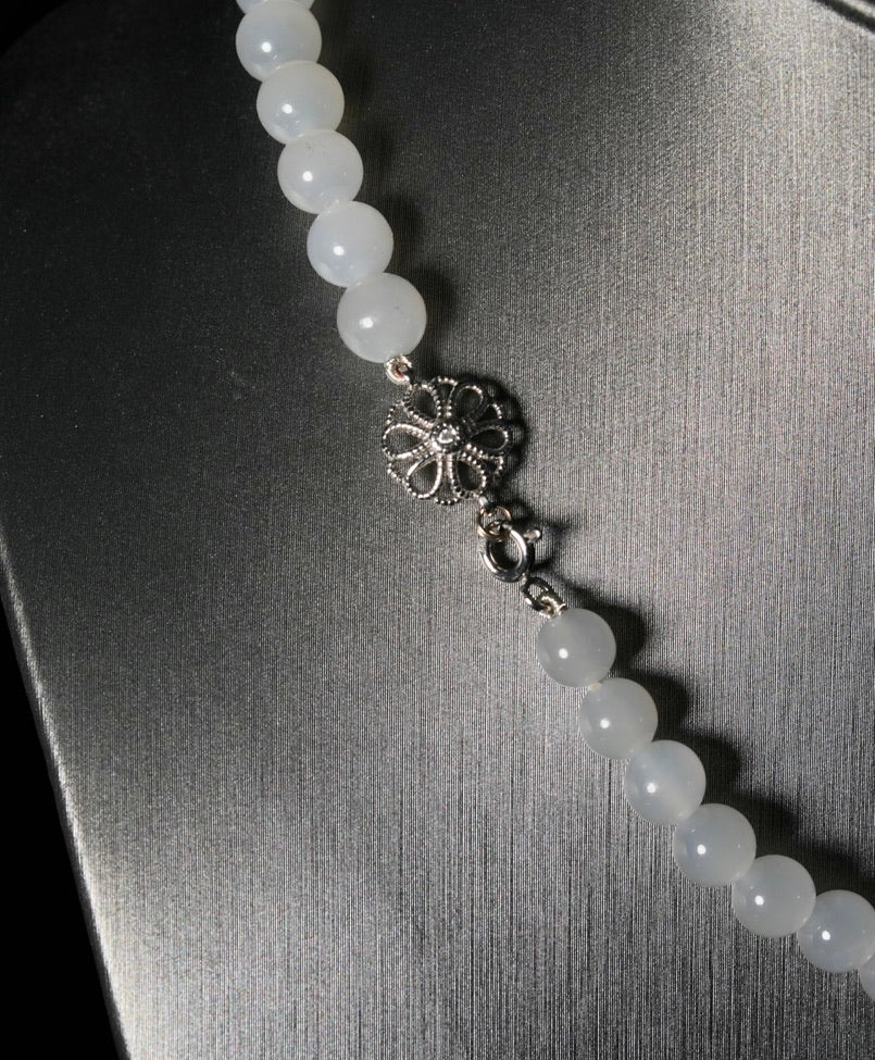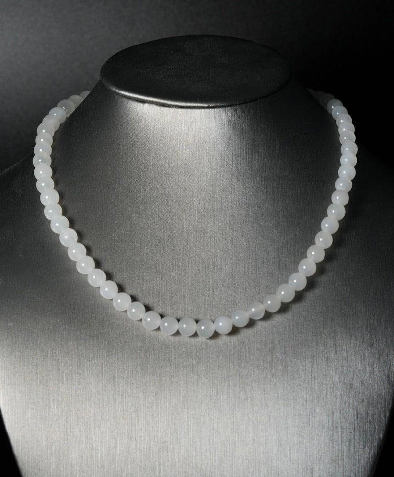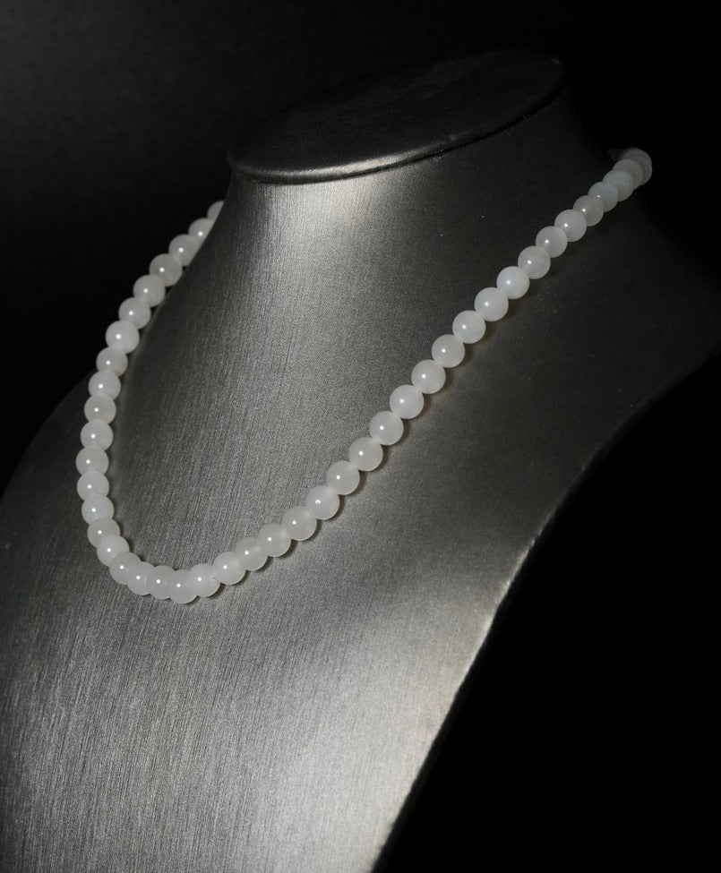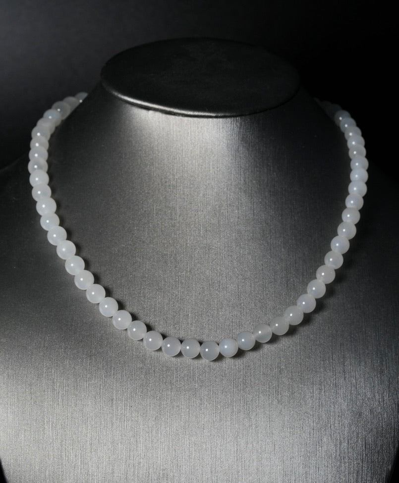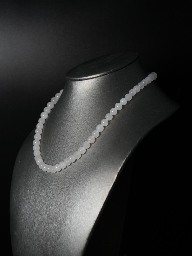 This white jade necklace not only exudes elegance on its own but also pairs beautifully when layered with other pendants.