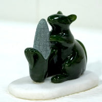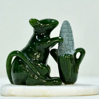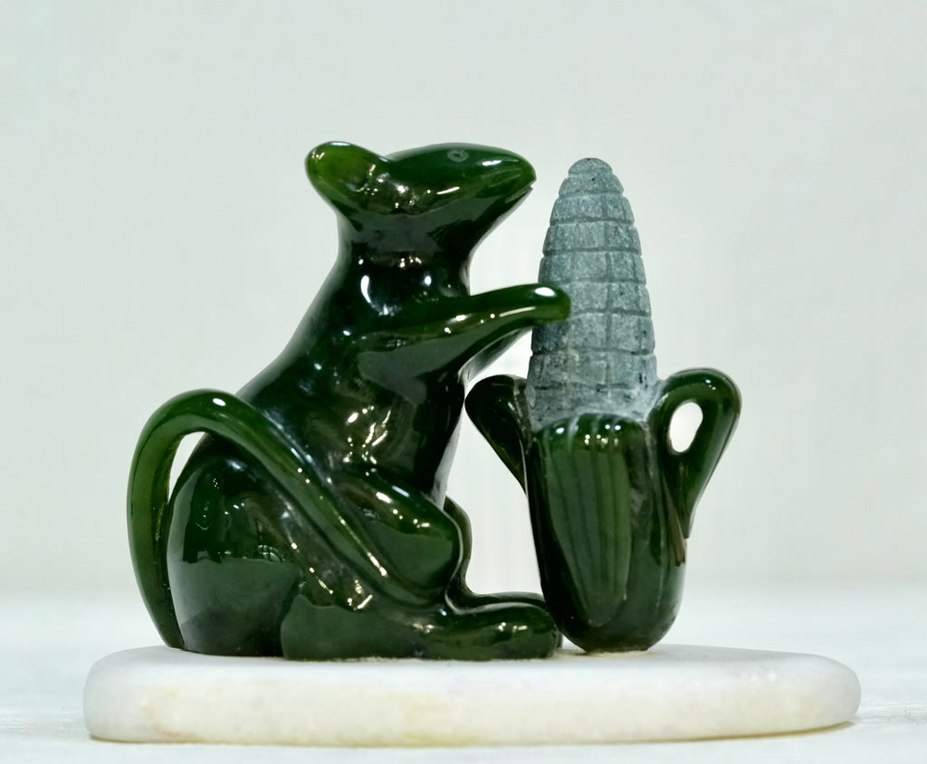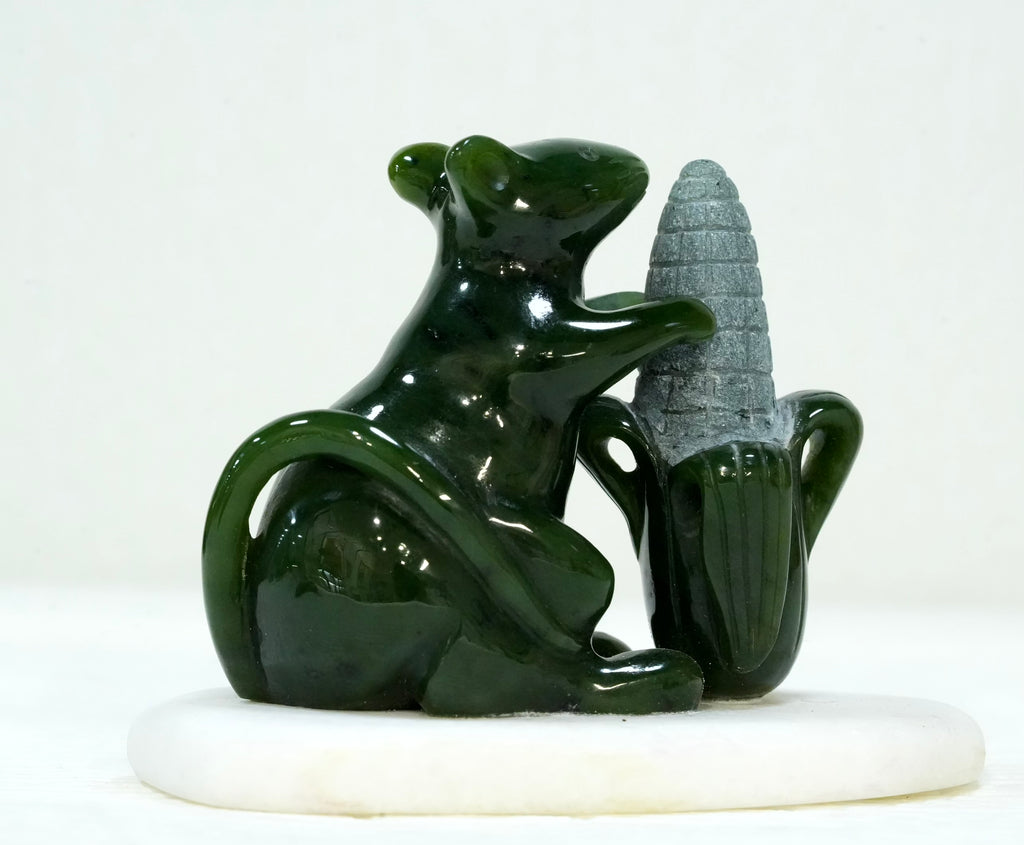 A mouse holding corn symbolizes great wealth and prosperity of generations to come. Corn is a multi-grain staple food representing more blessings, more children and rows of future generations. In traditional folklore, mice had intentions of making money and attracting wealth through various cunning methods.