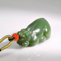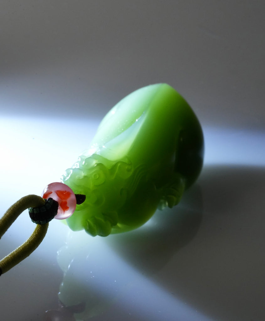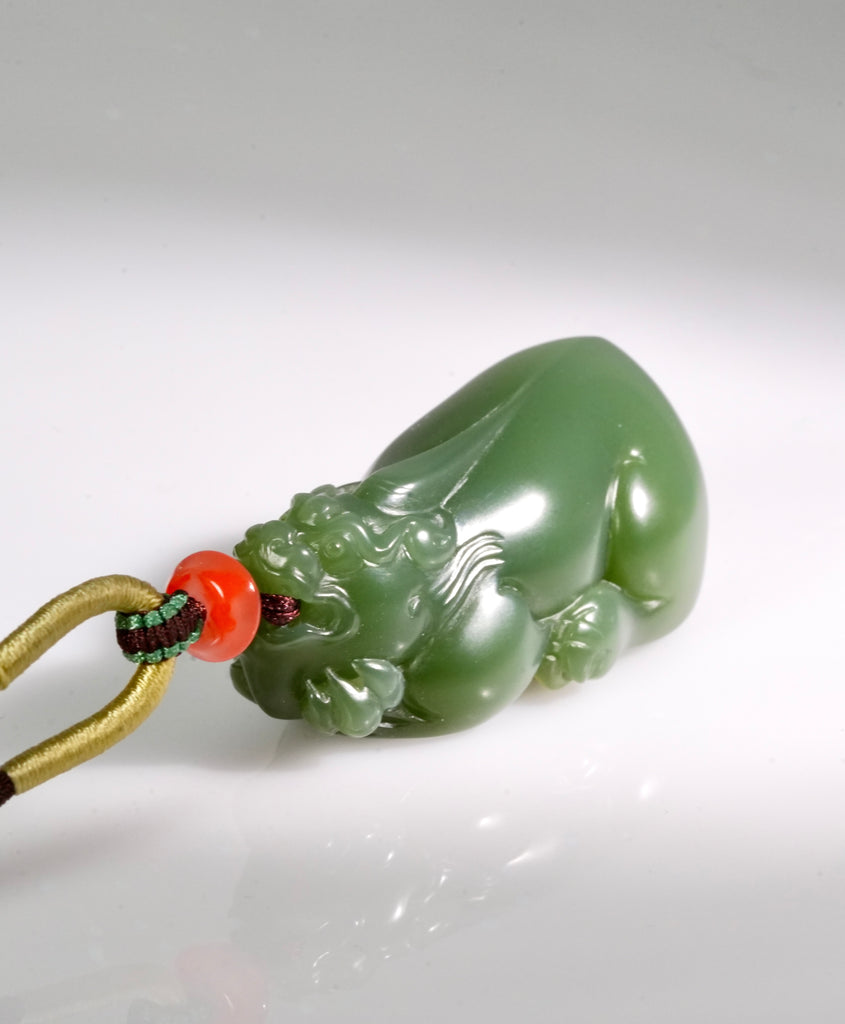 Pixiu are auspicious, winged animals in ancient Chinese history. They have the head of a Chinese dragon, the body of a lion, and either one or two antlers. Pixiu means good fortune for its owner. Pixiu will bring protection upon its owner and their family. They have strong energies that will be transferred to you the more you wear the piece.
