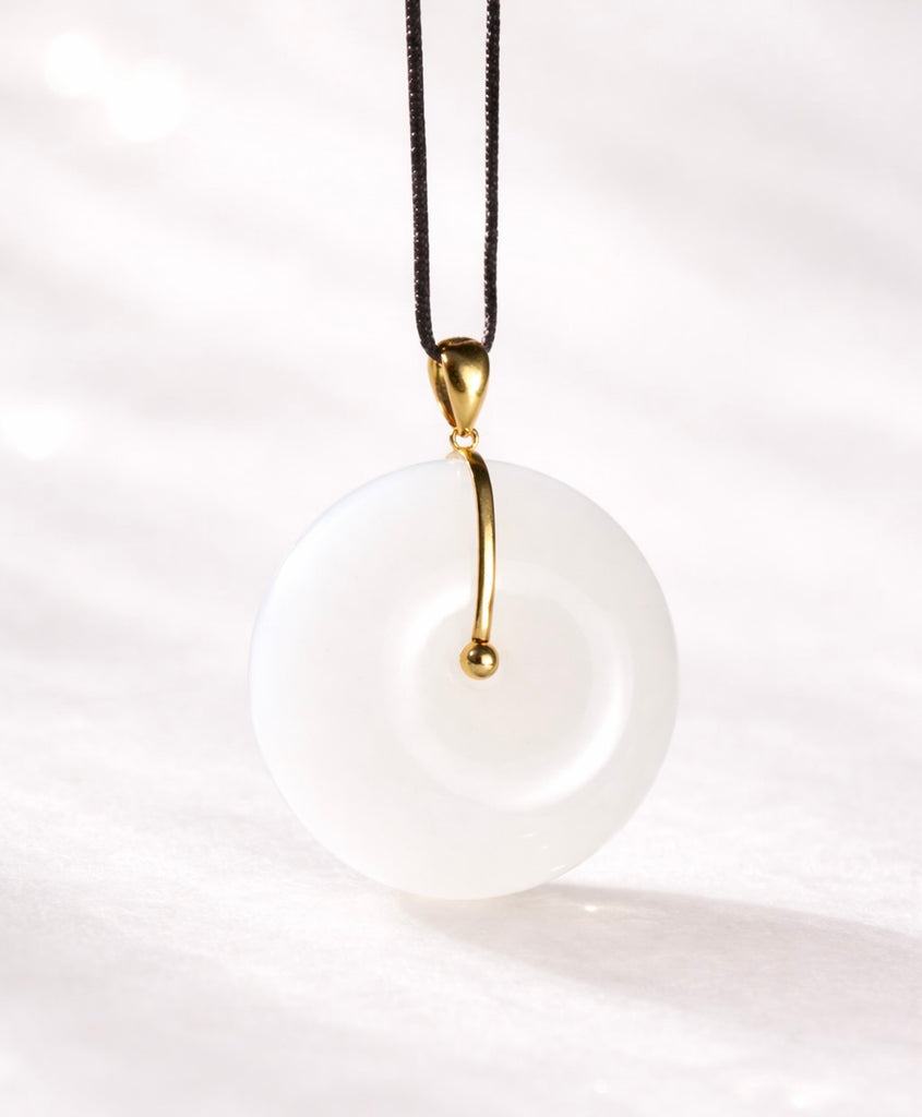 White Jade Donut Pendant PI Harmony Peace Buckle Ping An Kou 18K Gold Natural Jade #1509