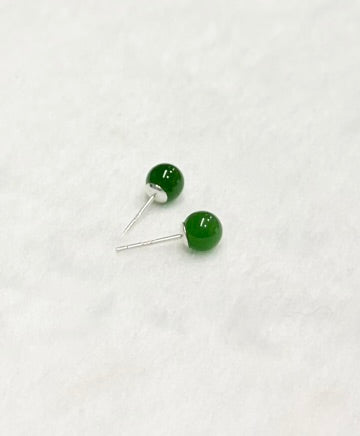 Canadian Polar Jade Ear Studs Sungreen 925 Silver Natural Jade 6mm #1497