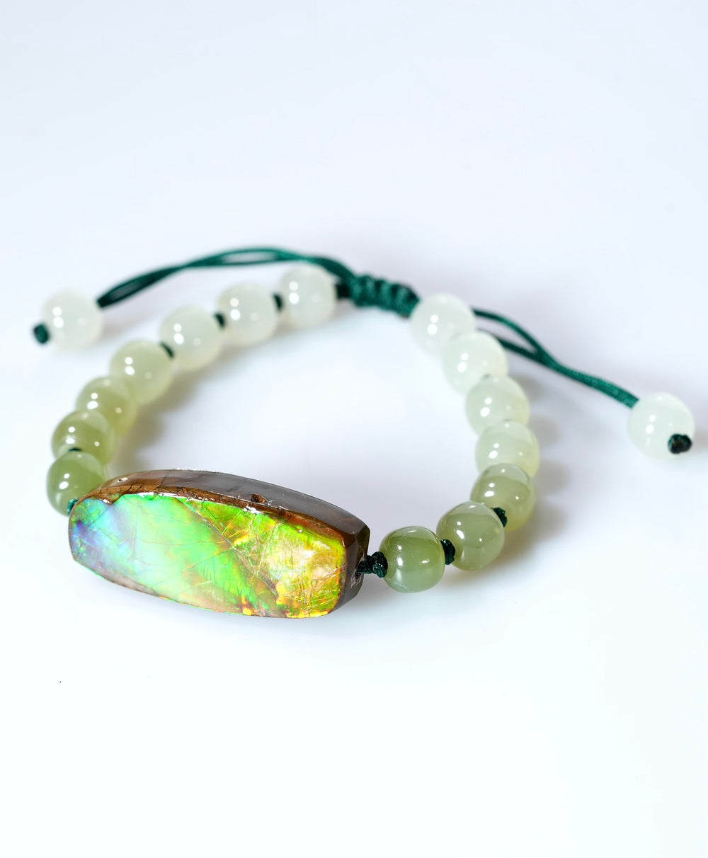 Double-Side Ammolite Hetian Jade Bracelet #1313 $399
