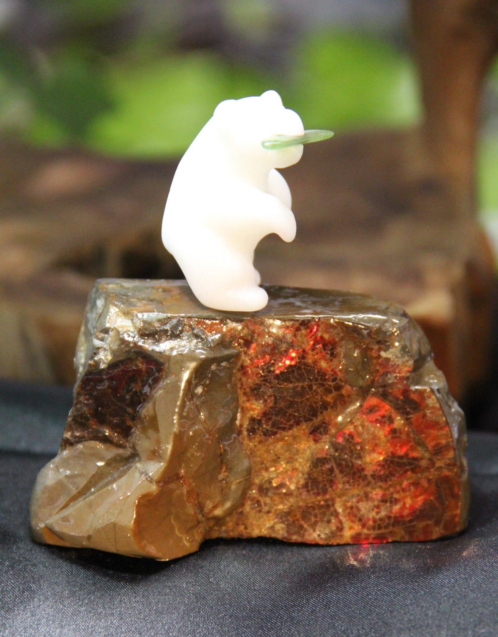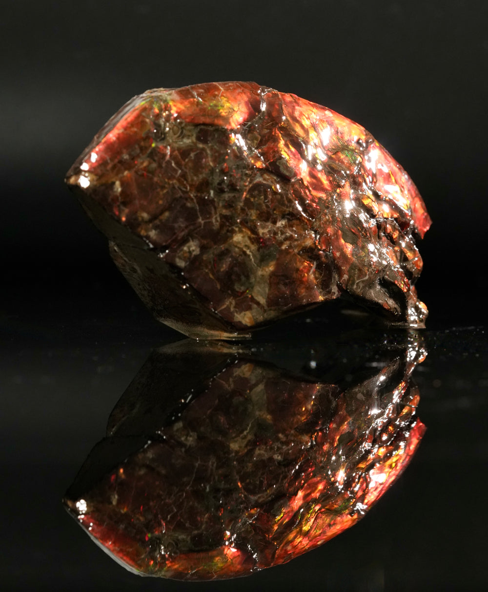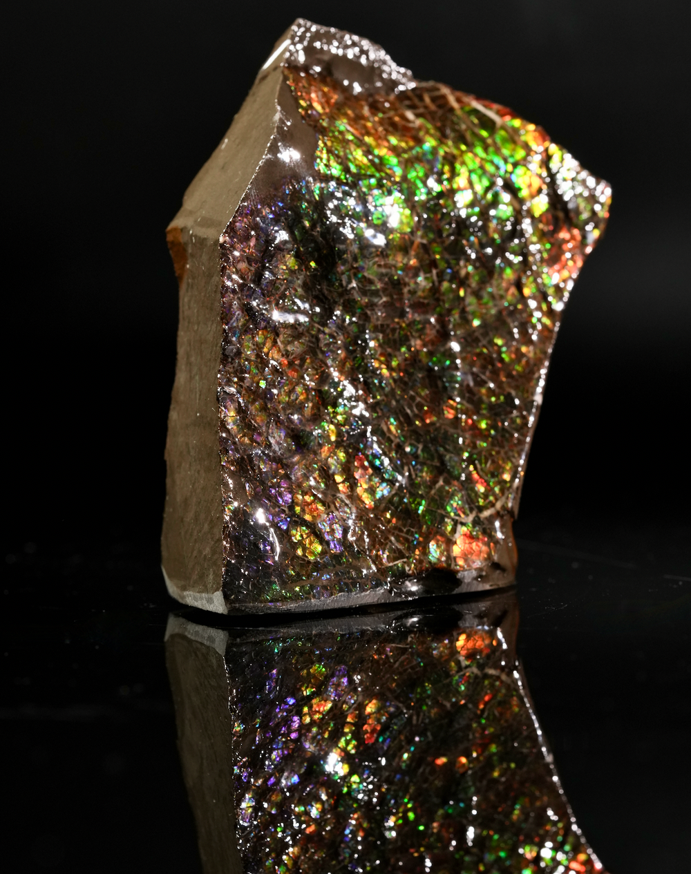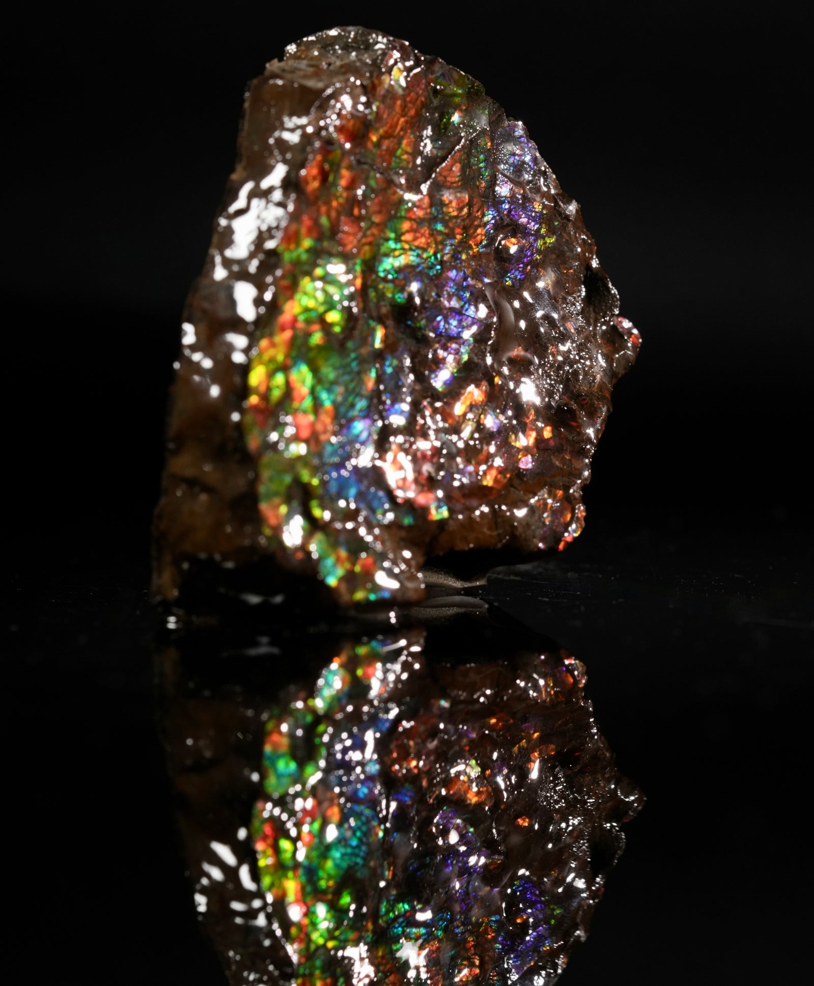 只有加拿大阿尔伯塔省的史前熊掌海底构造地区发现的斑彩螺化石才可以被定义为宝石级的斑彩石。(from GIA)