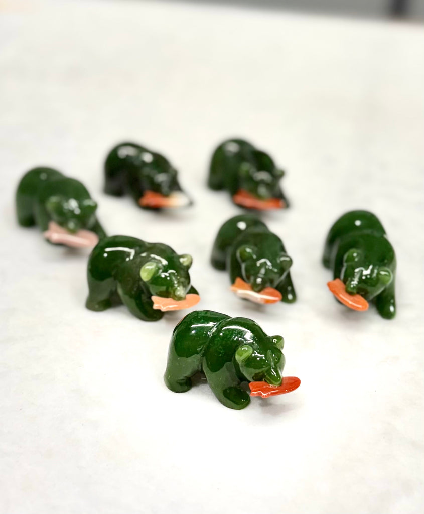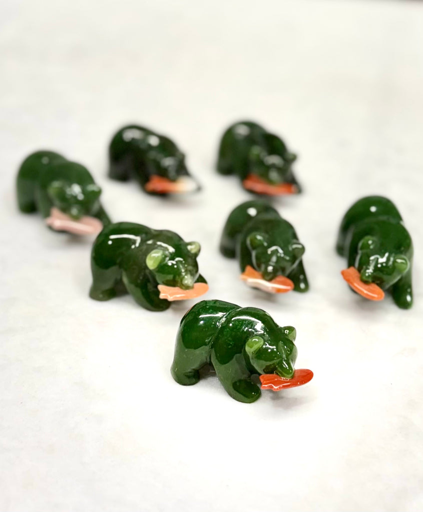 Canadian Polar Bear With Fish Lucky Bear Natural Jade 1.5 Inch #2230
