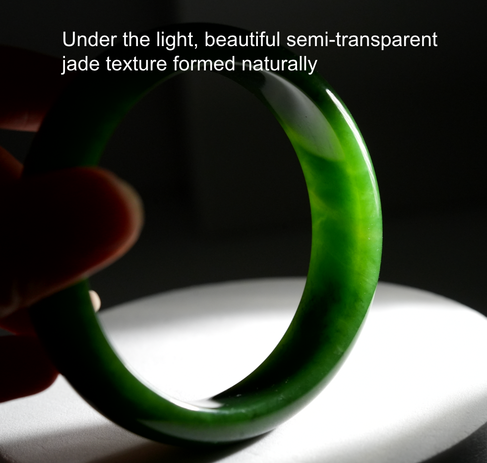 - “White dots” seen on the surface of the bangle are actually green — formed by chromium ions, that makes the bangle color more vivid