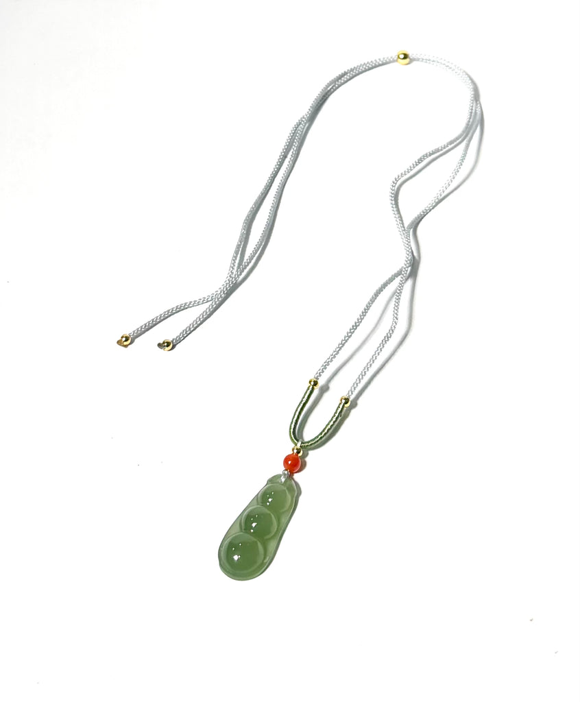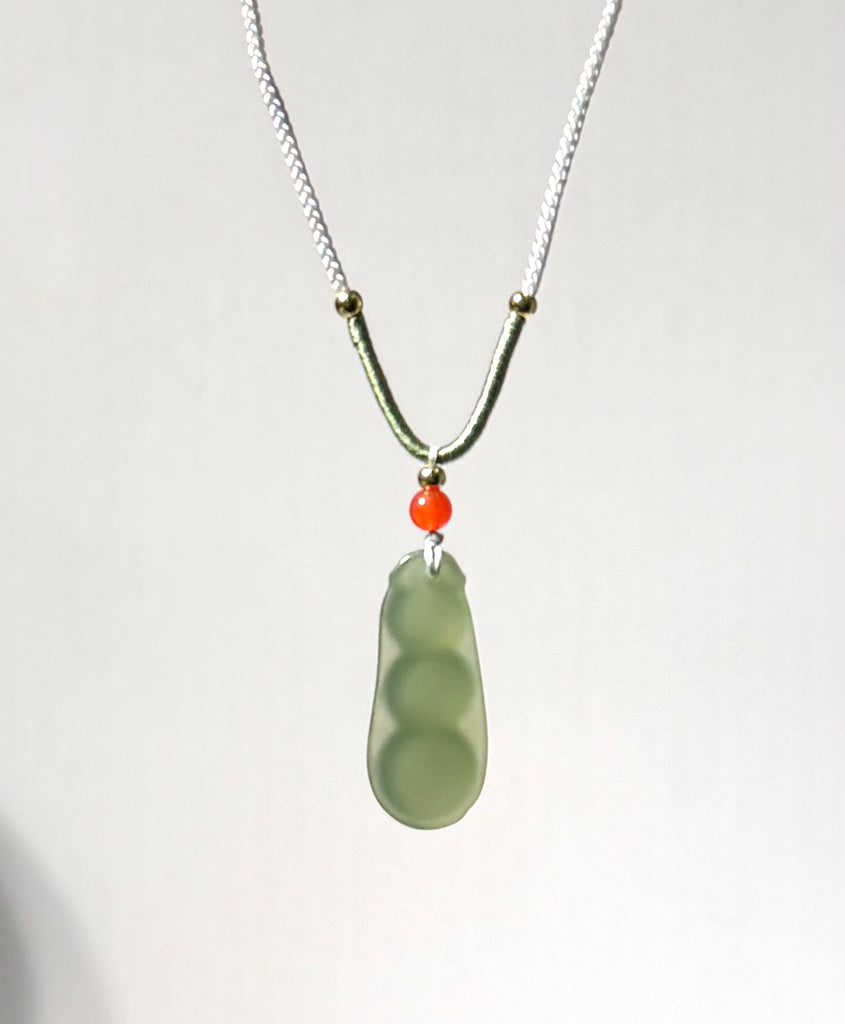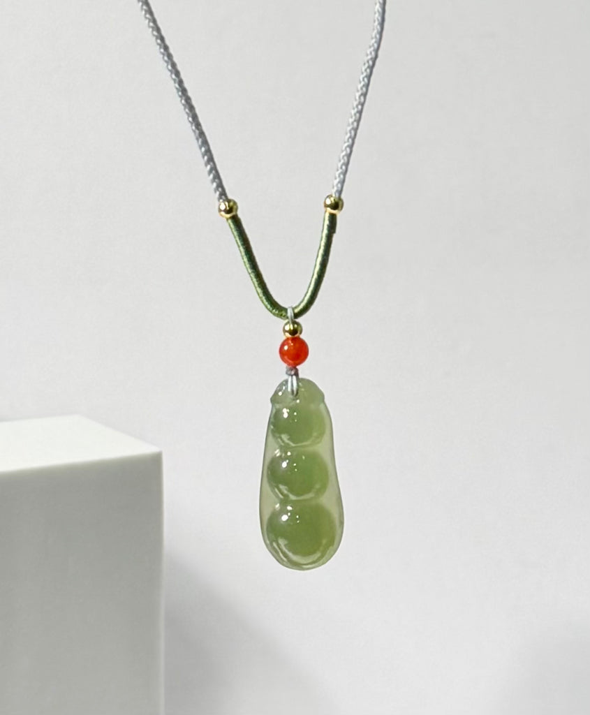The three plump beans inside represent longevity, happiness, and wealth. It’s often worn as a charm for good luck and a flourishing life.